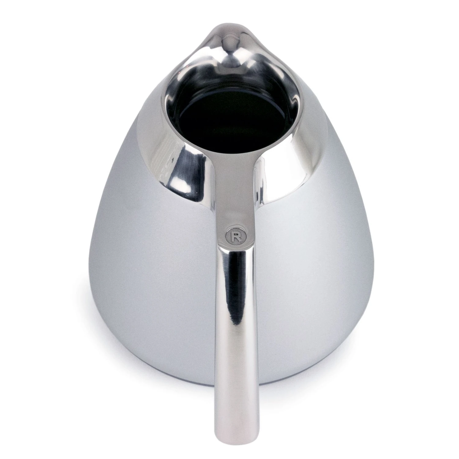 This carafe combines function, elegance, and durability. The insulated dewar body will keep your coffee hot for up to 4 hours after brewing. The 304 stainless steel handle and 18/8 stainless steel dewar body are very resistant to corrosive coffee acids and oils. The counterweighted handle makes pouring feel natural and well-balanced.