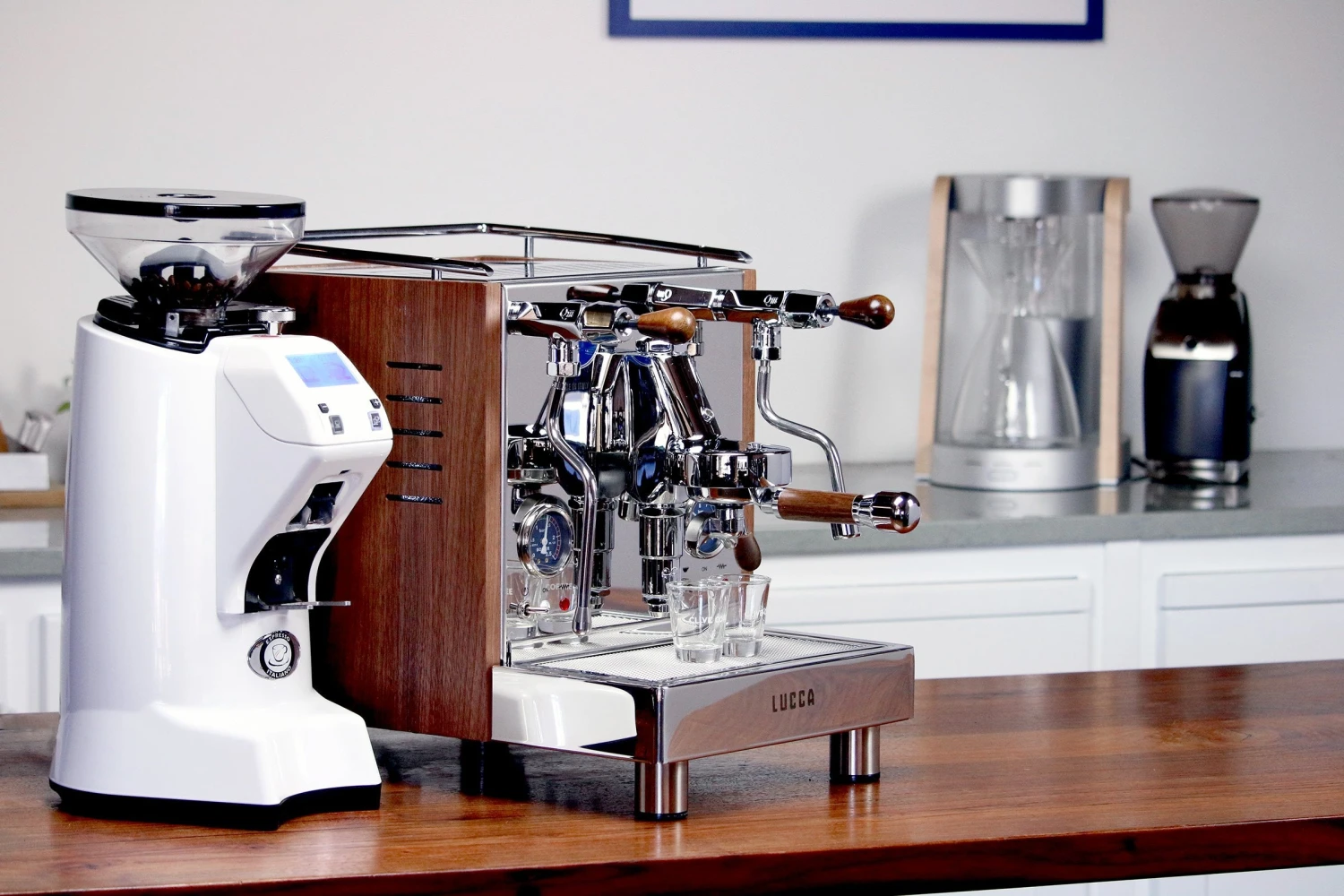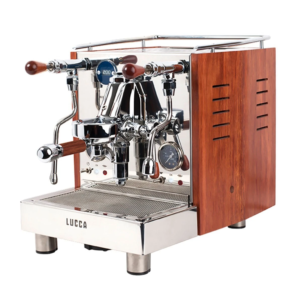 Our custom wood panels for the LUCCA M58 espresso machine by Quick Mill. Handmade right here in Portland, Oregon. Compatible with the original M58 and M58 V2. Espresso machine sold separately.
