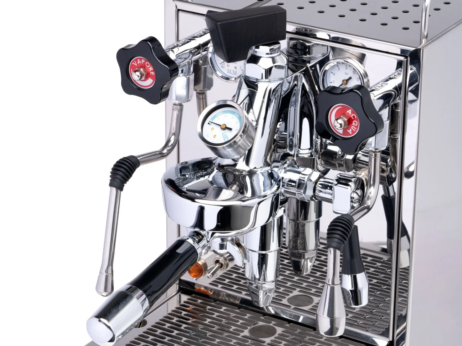 As the home espresso market continues to advance, manufacturers are building smaller and smaller machines that, paradoxically, pack a bigger and bigger punch. The ECM Mechanika V Slim is one such machine. Heat exchange systems are great for delivering continuous temperature stability and plenty of steam. With its large 2.2L boiler and powerful heating element, the Mechanika produces more steam power than espresso machines that are twice the price and significantly larger. Whether you love steamed milk drinks or the mechanical simplicity of a heat exchanger design, the Mechanika will deliver delicious espresso and classic looks. For reference, it has almost the same dimensions as the ECM Classika PID, a single boiler machine, making it as endearing as it is impressive.