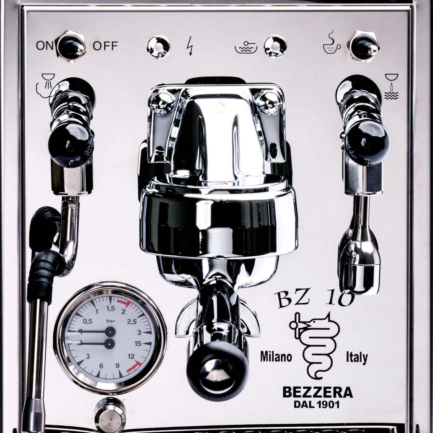 The Bezzera BZ10 is a stainless steel heat exchanger with a unique electronically heated group head, vibratory pump, and a sizeable 1.5L copper boiler. This machine runs off its internal 3L reservoir.