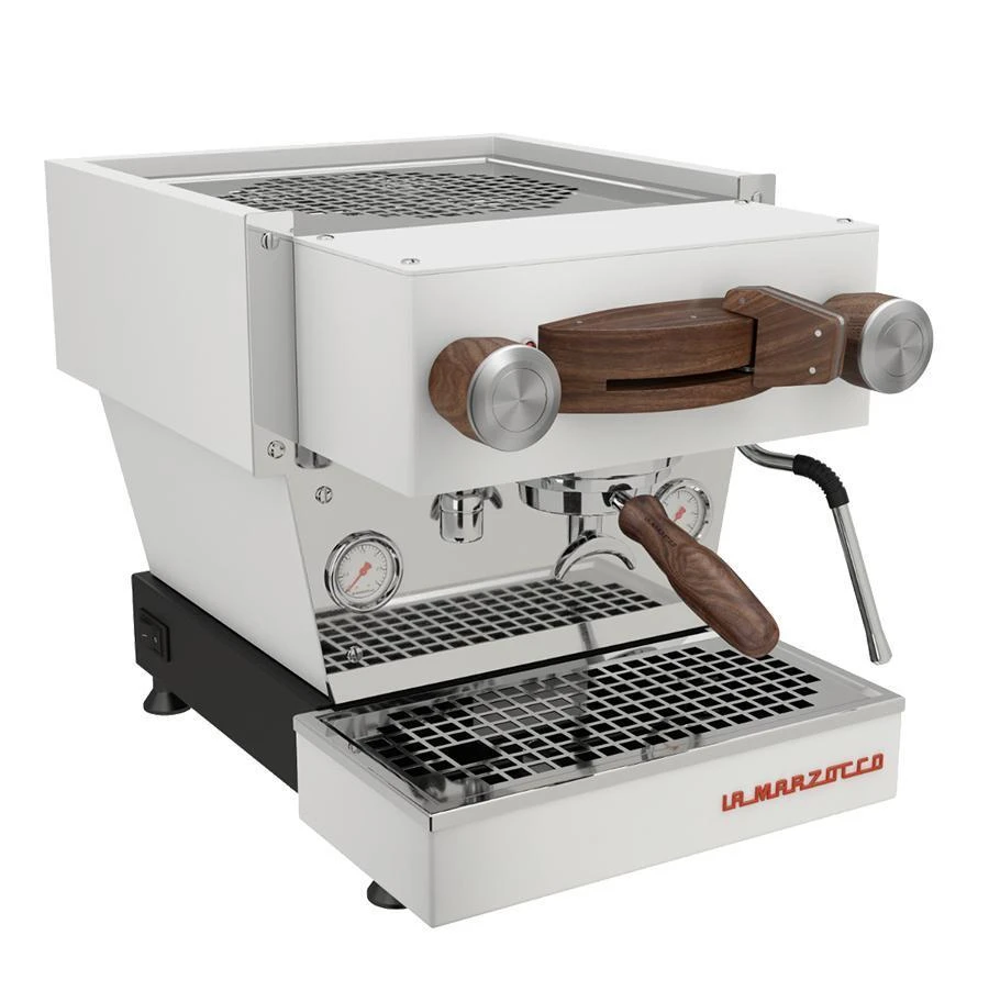 The La Marzocco Linea Mini is one of the first connected machines, allowing for bonus features only accessible via their app. This is a commercially certified dual boiler espresso machine with a saturated group head, a PID, a rotary pump, and an internal reservoir. It features an innovative heat exchange system that pre-heats water entering the brew boiler and the app allows you to program for pre-infusion.
