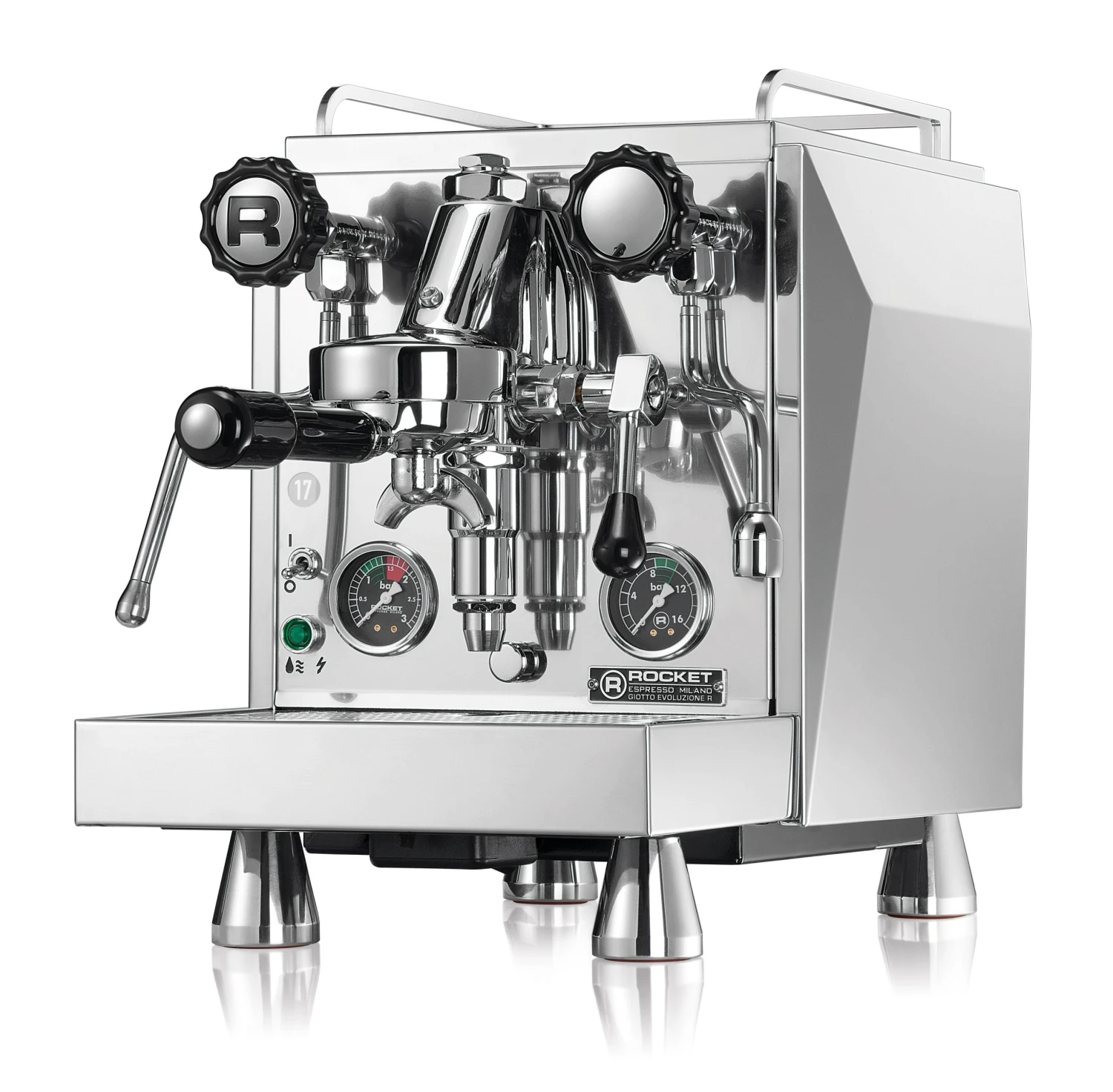 The Rocket Giotto Evoluzione R offers top-of-the-line heat exchanger performance with one-of-a-kind styling and no distractions. All this without cutting any corners. A rotary pump makes for near-silent operation, and the fact that it can be run on its reservoir or be plumbed in makes it wonderfully flexible.